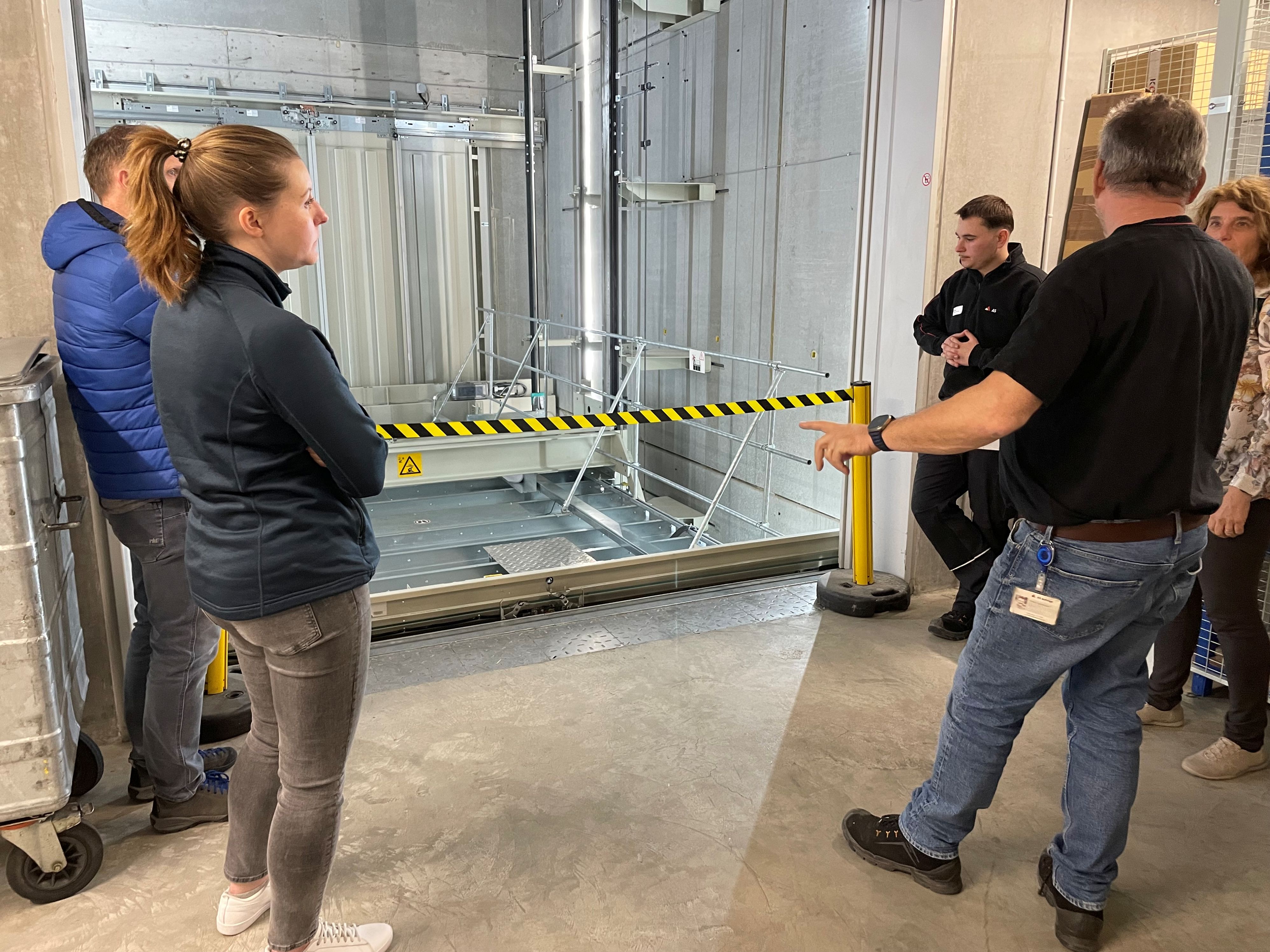 Zum Abschluss führten Lernende die Teilnehmenden in Gruppen durch den Betrieb und gaben Einblicke in verschiedene Aufzugarten, Liftschächte und Lagerbereiche. Beim anschliessenden Apéro blieb Zeit für Austausch und Vernetzung.